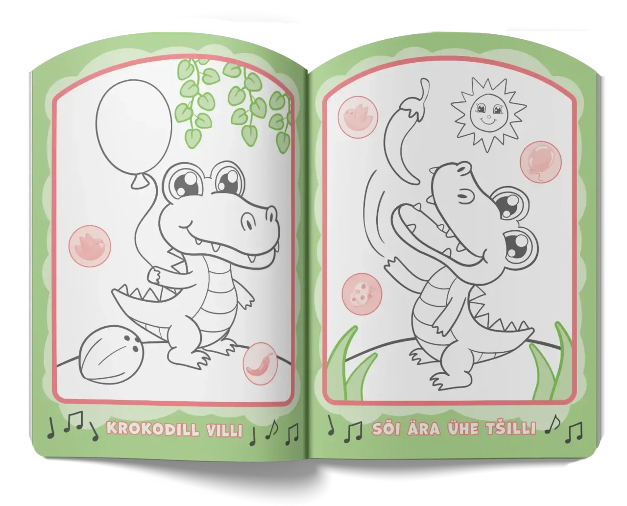 Kõne areng: laulude kaasalaulmine, küsimuste küsimine ja piltide põhjal vestlemine arendavad sõnavara ja kuulamisoskust.Peenmotoorika areng: joonte sees värvimine ja kleepsude kleepimine soodustavad käe ja silma koostööd.