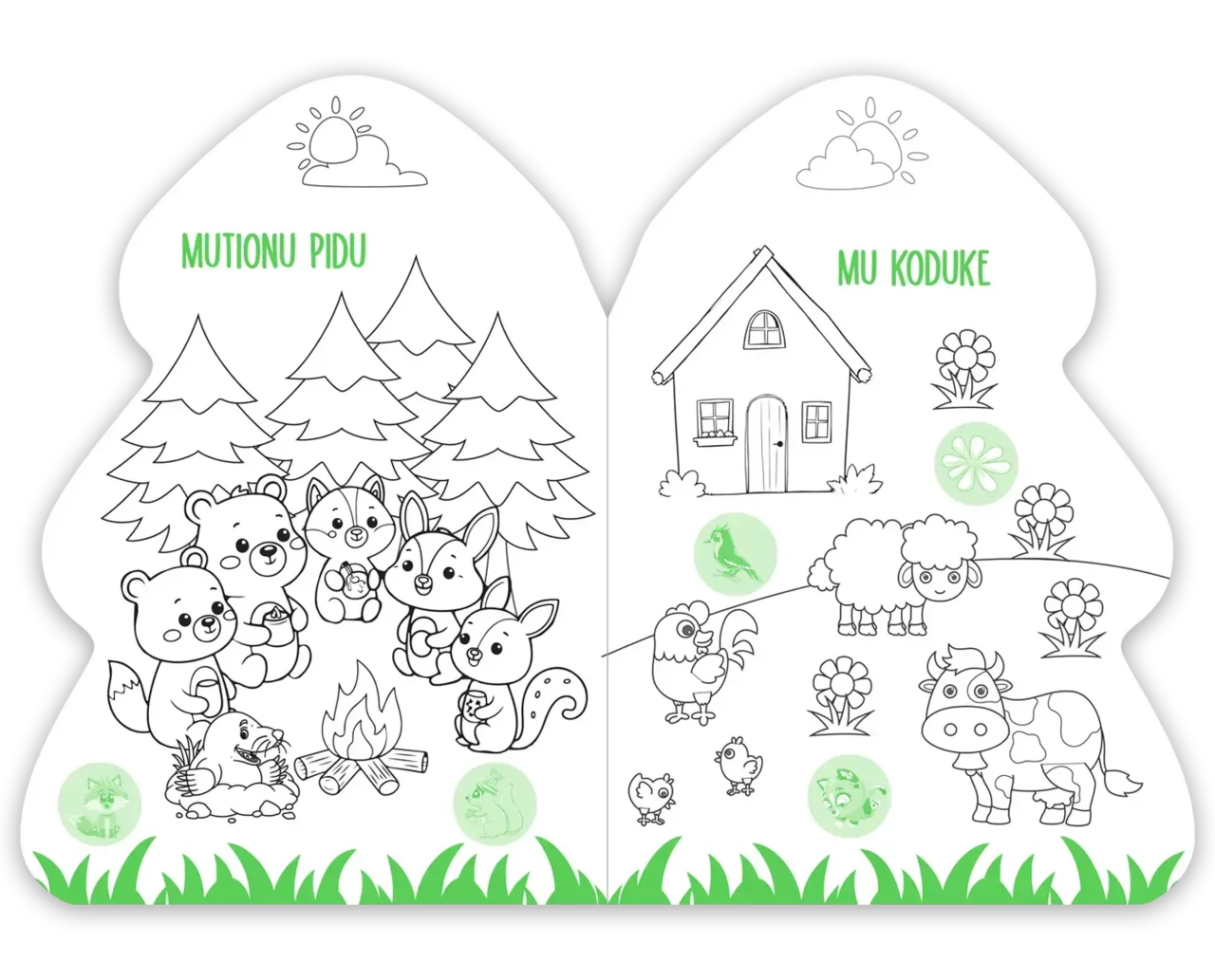 Värvi pildid, kaunista kleepsudega ja võta lauluviis üles, sest iga pildi juurest leiad tuntud lastelaulu pealkirja, teiste hulgas "Ehitame maja", "Mull-mull-mull-mull väiksed kalad", "Karumõmmi unelaul", "Hiir hüppas", "Võilillelaps" jne.