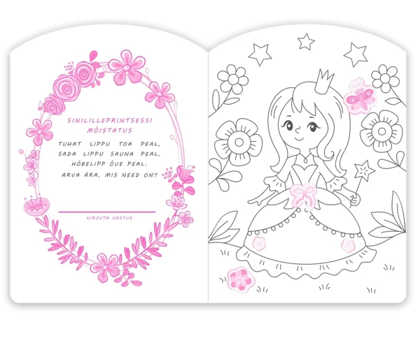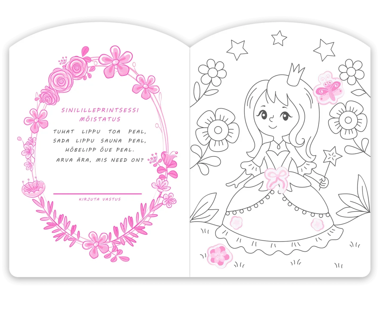 Tule lilleprintsessidele külla! Mõistata mõistatusi, värvi ja kleebi!