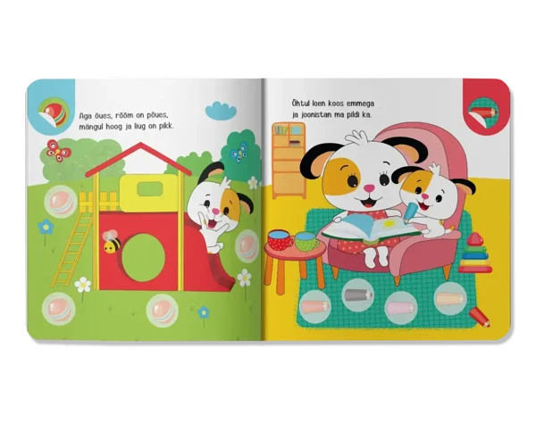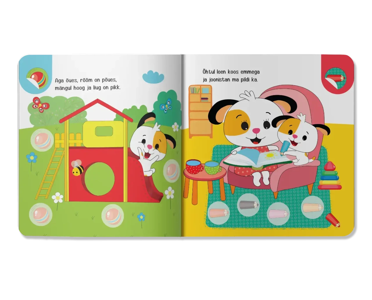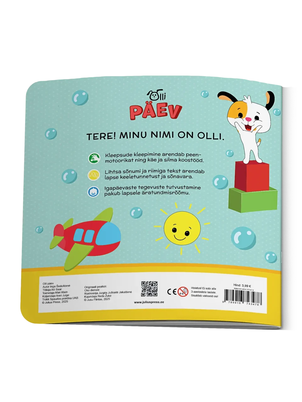 Väikesel kutsikal Ollil on toimekas päev, nagu sinulgi. Ta ärkab, peseb hambad, sööb hommikusööki, läheb õue mängima, käib potil, loeb sääsed kokku ja teeb palju muud.