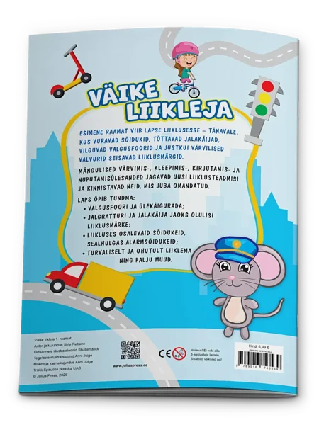 "Väike liikleja" on turvalist liiklemist õpetav kleepsudega tegelusraamat, mis viib lapse tänavale, kus vuravad sõidukid, tõttavad jalakäijad, vilguvad valgusfoorid ja justkui värvilised valvurid seisavad liiklusmärgid.